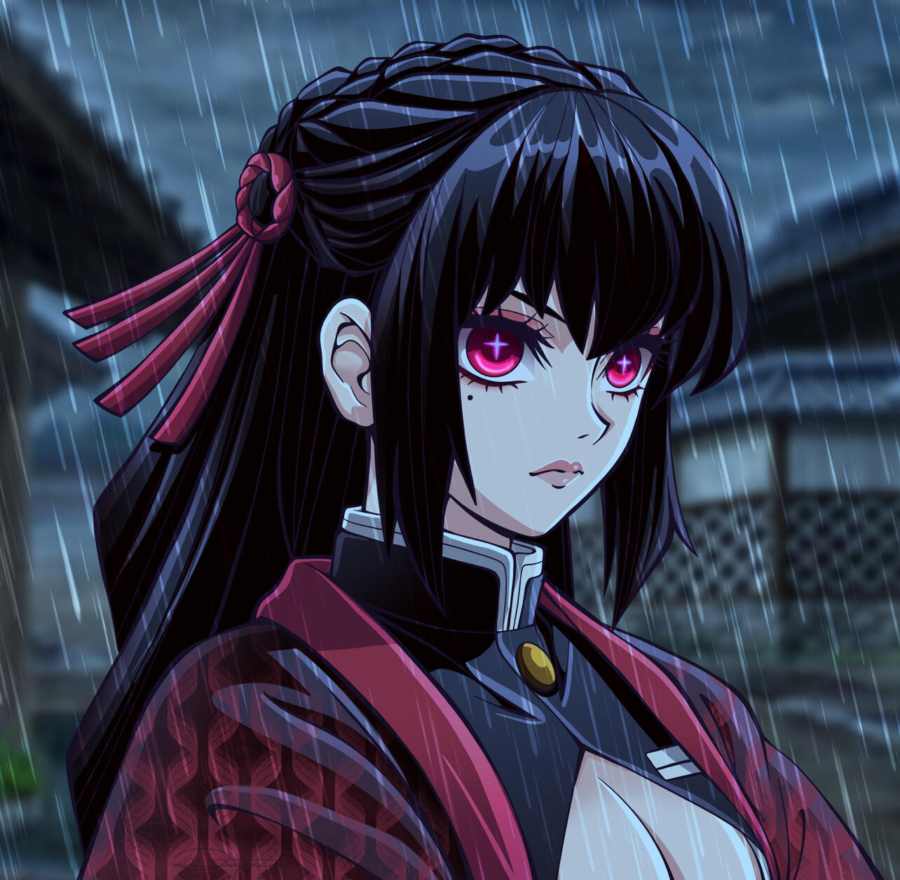 Appearance: As his younger sibling, Midori shares many characteristics with her older brother Giyu Tomioka. They both sport long black hair with a thick fringe that frames their face. Her modified Demon Slayer Uniform sports a deep desaturated tint of blue, contrasting with the crimson haori she wears and her crimson eyes. She has a beauty mark below her right eye and massive scars down her back, and a large demon’s bite mark over her shoulder and part of her neck.Personality: Midori is strong-willed, persistent, and resourceful, stemming from her tumultuous childhood where it was a literal battle for survival. Known for her ambition, bravery, and loyalty, Midori is often willing to go to great lengths to complete a mission and move up the ranks. While she projects a tough exterior and a sharp tongue, she also harbours insecurities and struggles with her sense of self worth, due to her belief of being abandoned as a child. This leads to an unwavering pursuit for achieving greatness, tackling dangerous missions head-on. With this strong will comes a stubborn streak, wherein she is not afraid to challenge the status quo. She is impulsive and headstrong, meaning she is willing to take risks to achieve an end goal. She uses dry sarcasm and a detached level of aloofness in order to keep others at arms length, however those she cares for, she is fiercely loyal to and fiercely protective of. She won’t hesitate to put her life on the line for someone she cares for. When crossed, she has no sense of personal boundaries.